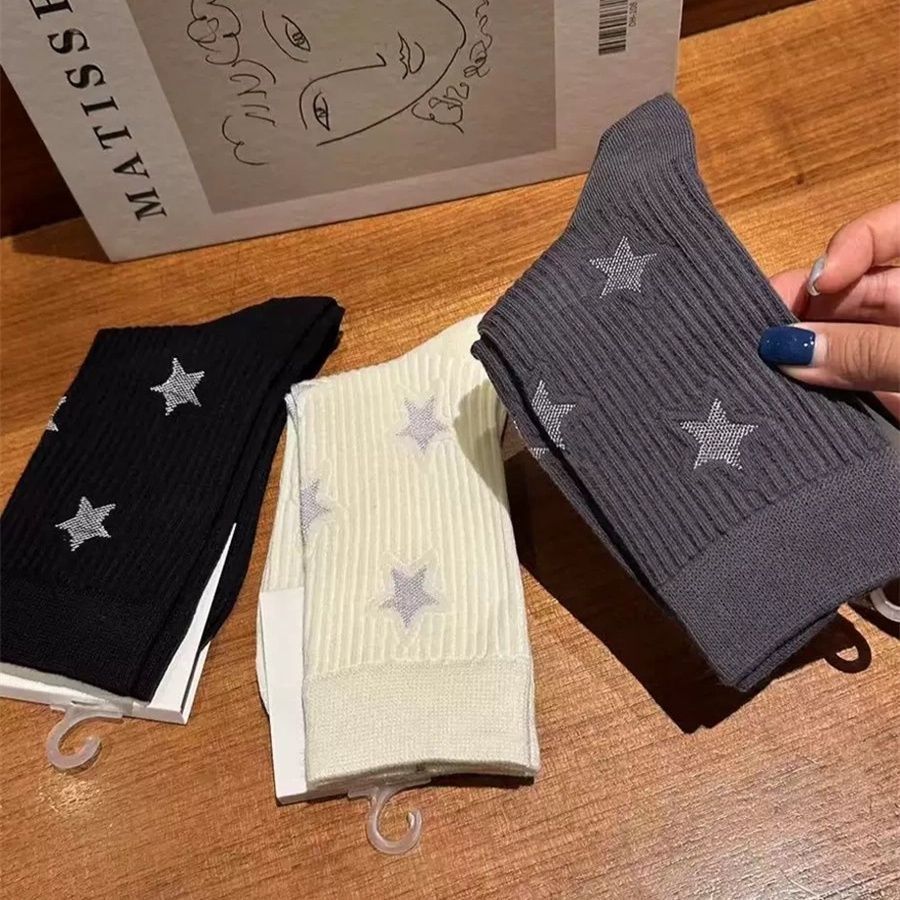 五角星秋冬中筒女靴下韓国版星靴下ファッションデザイン感綿質春秋ハイソックス