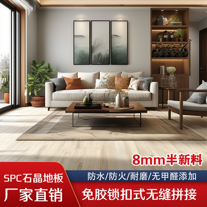 SPC石塑ロックフロア8mmカチット式家庭用リフォーム厚型耐摩耗性石晶防水ホテル賃貸住宅工事