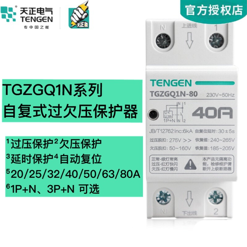 Tianzheng TGZGQ1N-80/100 自己復帰型過不足電圧保護装置 32/40/63A 家庭用単相 220V