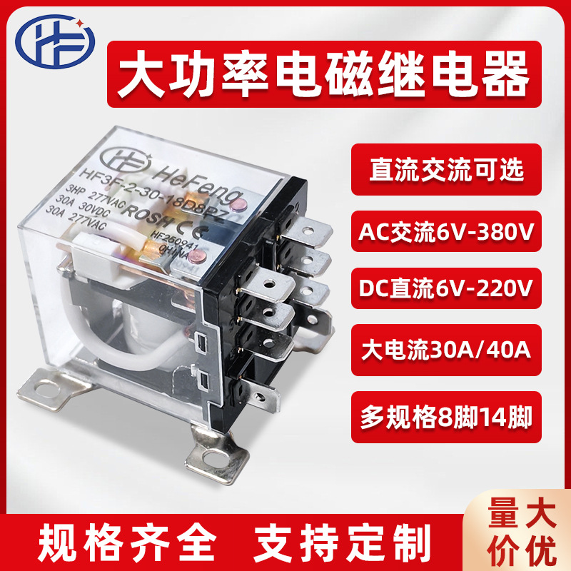 ハイパワーリレー 30A40A 高電流 DC AC オプションのマルチ仕様 8 ピン 14 ピン電磁リレー