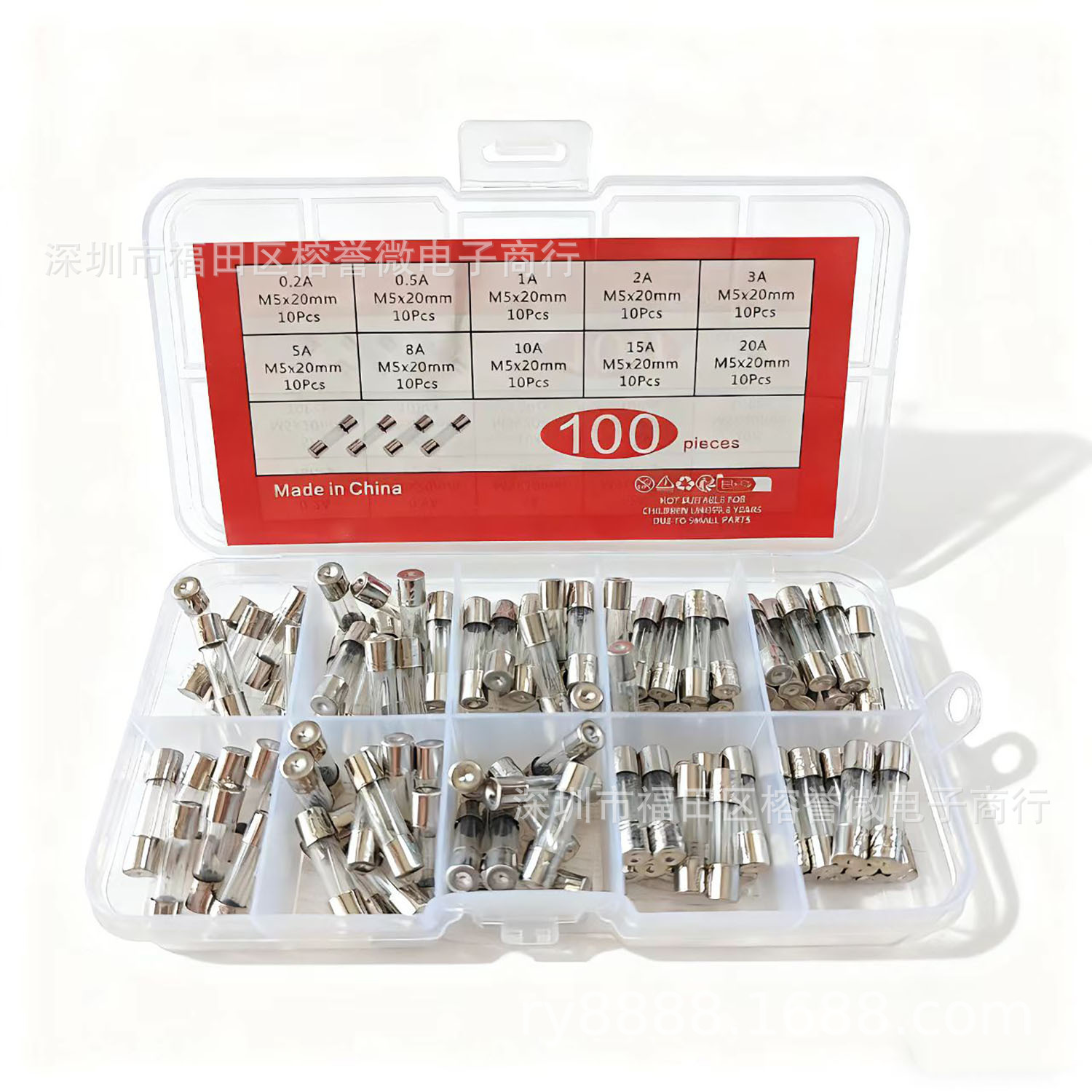 100 個 5X20 ヒューズチューブボックス 10 種類の抵抗 100 個のヒューズ 5*20MM 0.2A-20A