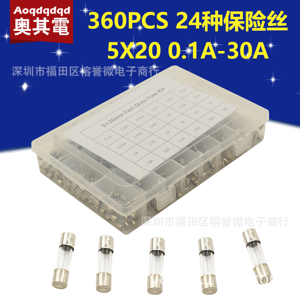 360PCS新型ガラスヒューズ6x30mm 0.63A-25a 5 × 20mm 0.5A-20aヒューズ