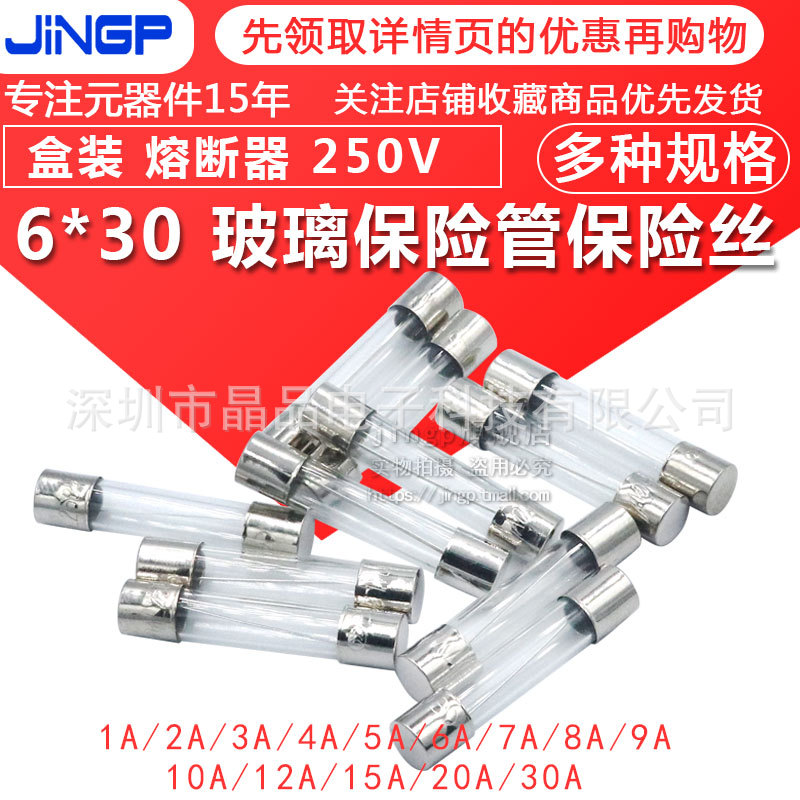 ガラス保険管6*30mmヒューズヒューズ250V 1a 2a 3a 4 a 6 7 a 10a 15a