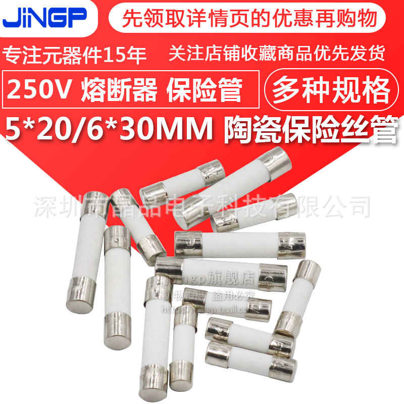 セラミックヒューズ5*20mm 250vヒューズ6*30 1a/2/5/6.3a/8a/10/15/30a