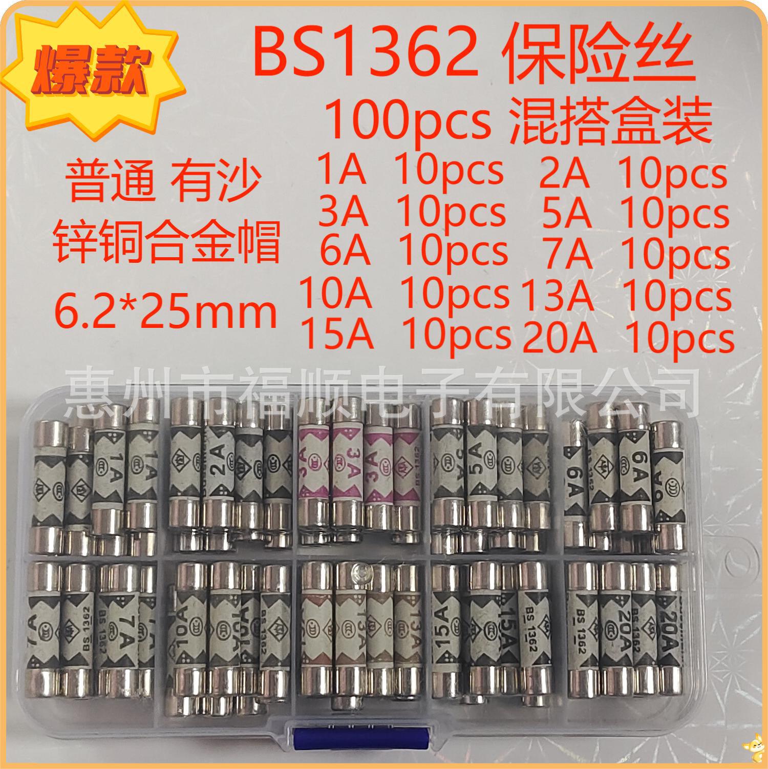 100個入りミックスボックス 亜鉛銅合金キャップ 有沙非標準 6X25 BS1362英国規格ヒューズチューブ