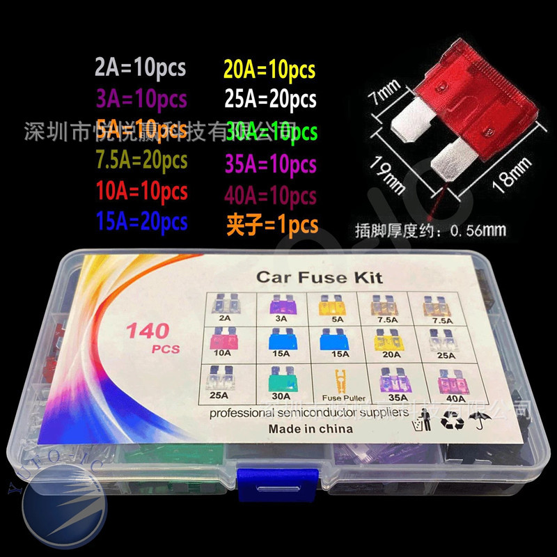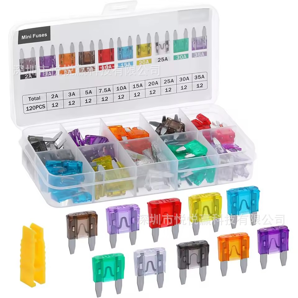 120PCSトランペット自動車ヒューズ2 3 5 7.5 10 15 20 25 35aケースクリップ