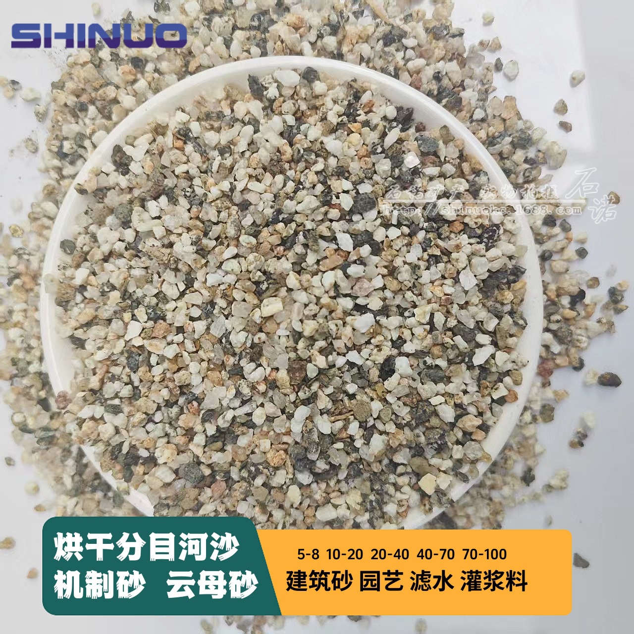 花の植え付け用の乾燥された細かい砂、建築舗装用の中粗砂、グラウト材用の機械製砂、乾燥混合砂