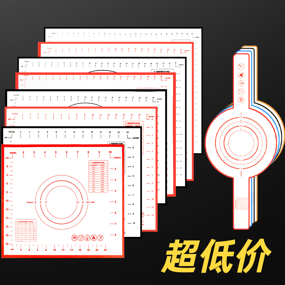 卸売りキッチンシリカゲル揉み面マット家庭用食品級目盛付き小麦粉マット焙煎道具めん棒めん類マット