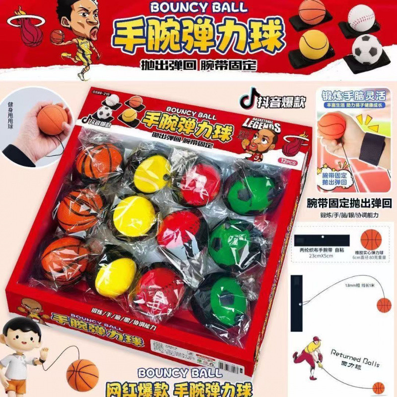 リストボール、ロープ付き、反発力、高齢者向け、子供向け、非玩具、投げ回しボール、反応力トレーニング、バスケットボール、ストレス解消