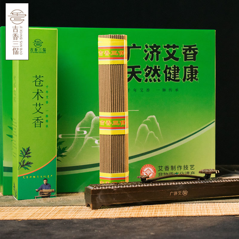 Jixiang Sanbao Guangji Ai Xiang ギフトボックス 21cm 線香、燃焼時間 1 時間、家庭用屋内消臭、長持ちするよもぎ