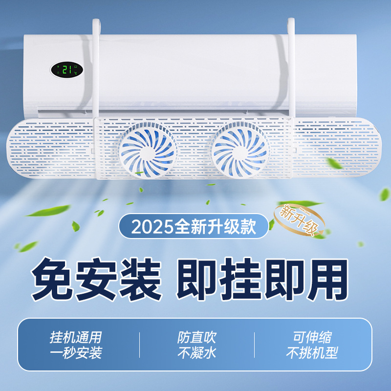 扇風機付き新型吊り下げエアコンブリーザー、直撃防止、取り付け不要、ユニバーサルウィンドディフレクター、家庭用吊り下げ防風