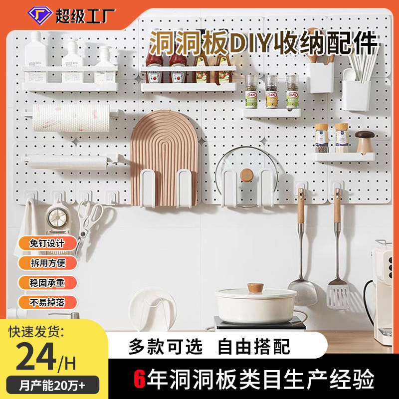 穴の穴の板の台所は壁の棚を掛けて厚い壁の上で組み合わせて穴を開けない穴の板の部品の収納棚を収納することができます。