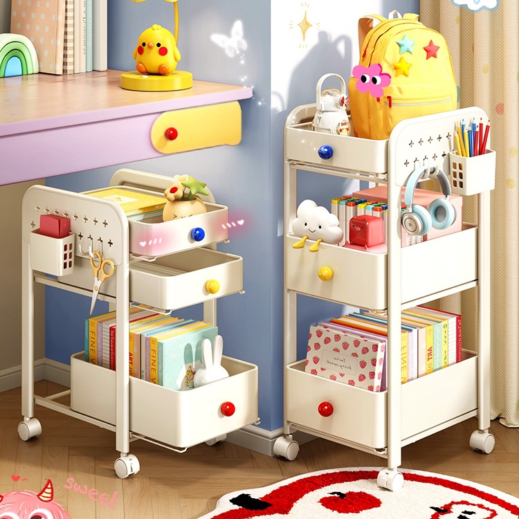 カバンの物置棚家庭用カバンのテーブルの下の滑車棚寮の本の収納棚の移動式スナックカート
