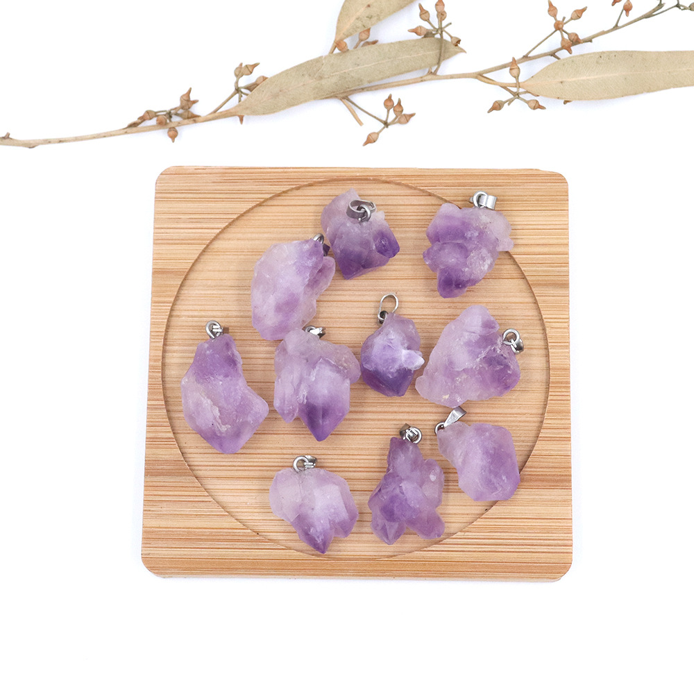 天然水晶紫晶不規則ペンダント原石メッキ金粉晶黄水晶diyアクセサリークロスボーダー