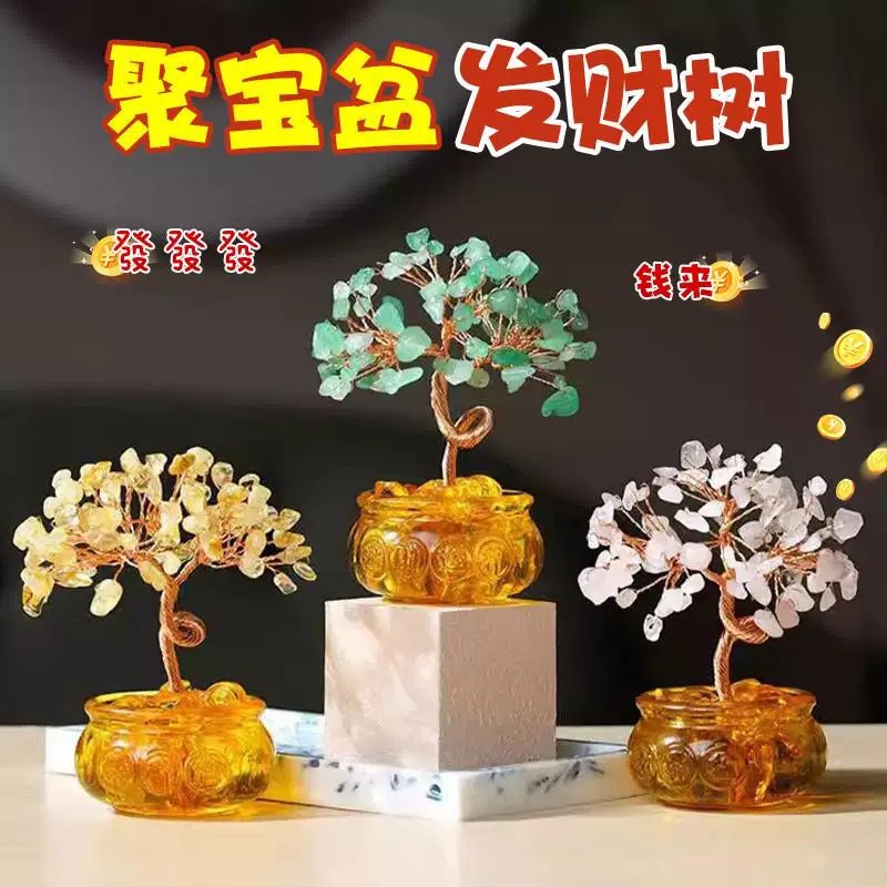天然黄水晶瑠璃元宝聚宝盆水晶発財樹事務室デスクトップ装飾品置物招財樹