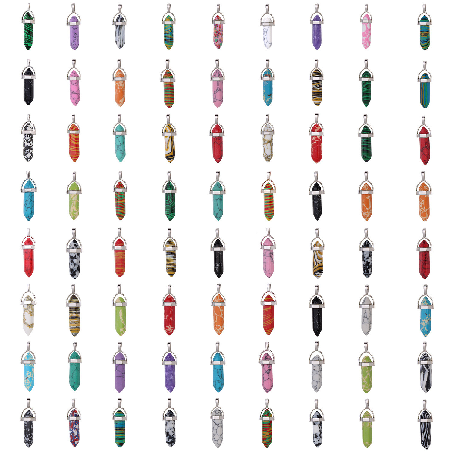 人造水晶の石の六角柱のペンダントのひし形の切断面の弾頭のネックレスのquartz pointのペンダント