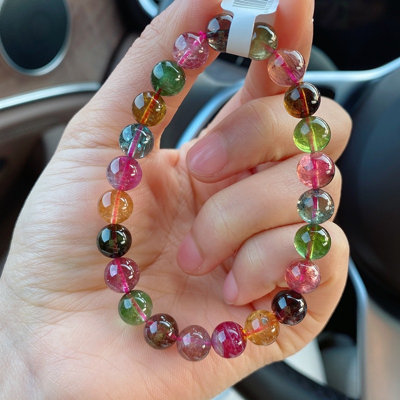 水晶ブラジルの古い材料の虹の碧璽のブレスレットの女性の丸い玉の濃い艶と透き通っているキャンディーの碧璽の手は贈り物をします。