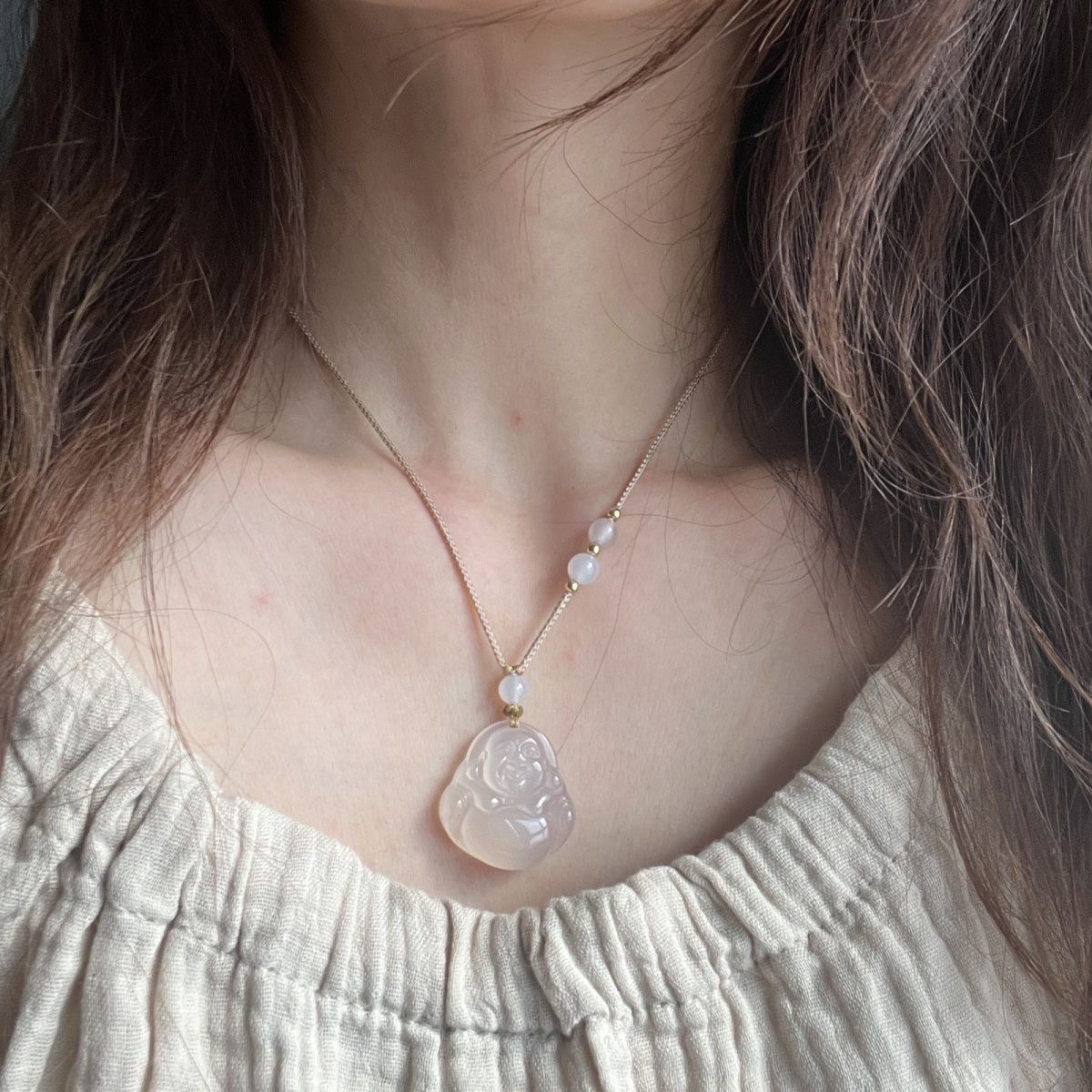 高氷天然玉髄白氷仏公ペンダント瑪瑙手作り編み縄レディース弥勒仏玉ペンダント古風