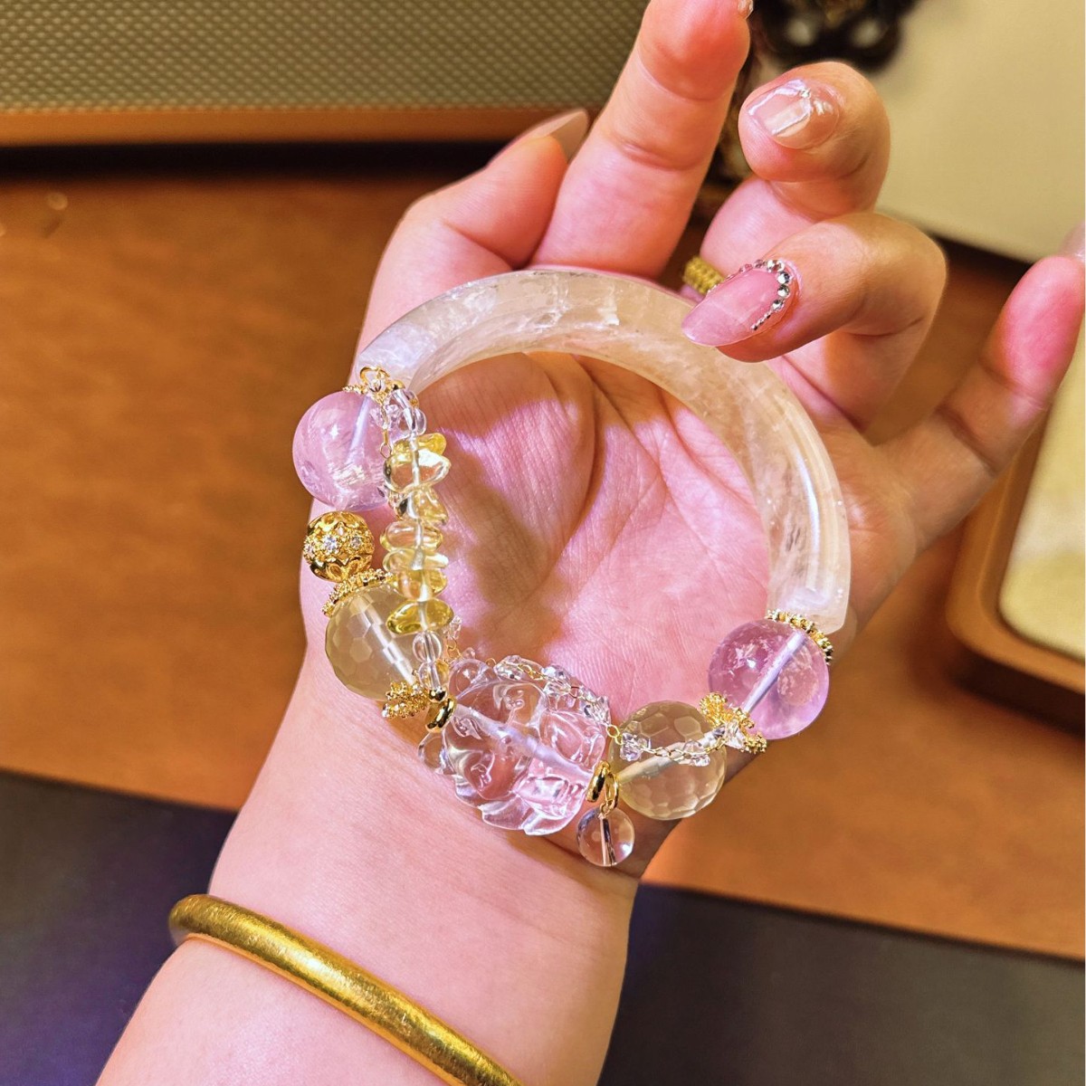 招財水晶シリーズ天然黄塔晶黄水晶いちご晶虎眼石紅書同金水晶手串