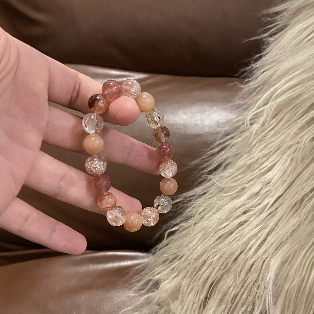 広州晶耀 天然透明馬粉果ゼリー馬粉 マダガスカル産ピンククォーツブレスレット卸売