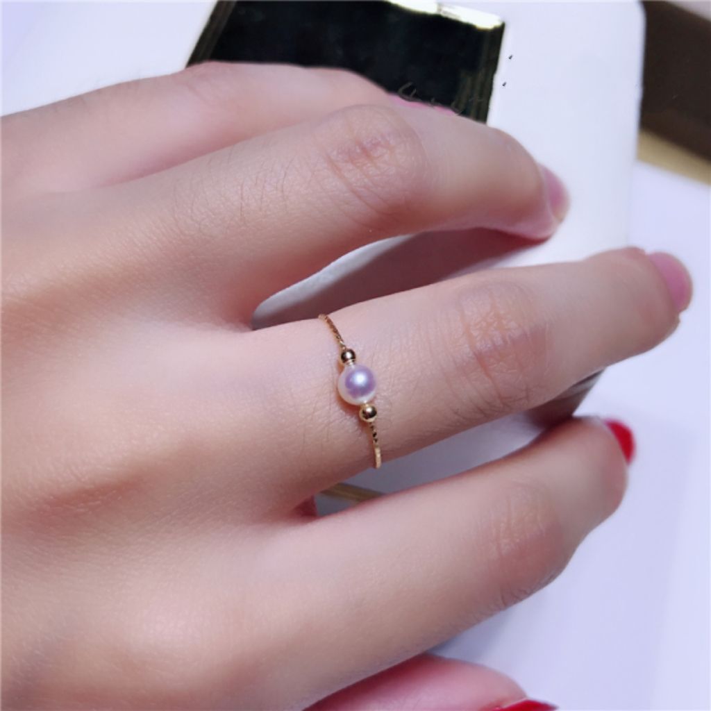 2025 本物の非常に明るいラウンド天然真珠リング女性用 18 ゴールド非退色リングニッチハイエンドライトラグジュアリー