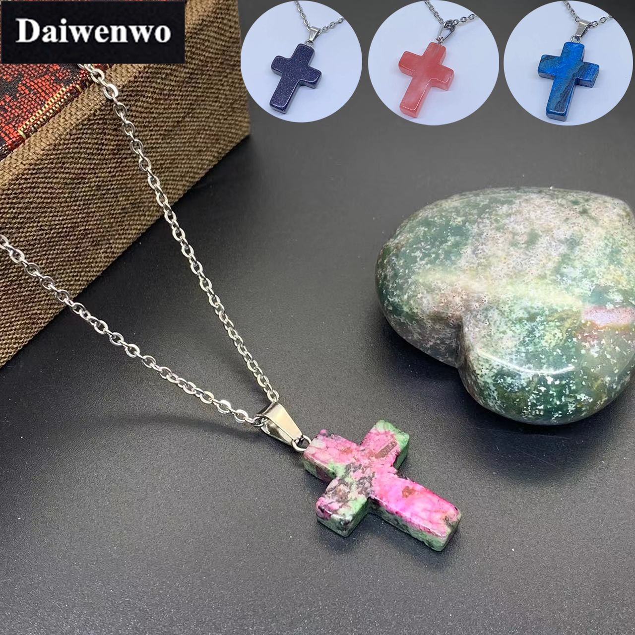 20種類の天然石クロス合金ネックレス卸売り金青砂緑東陵白水晶粉晶黄虎スイカ赤