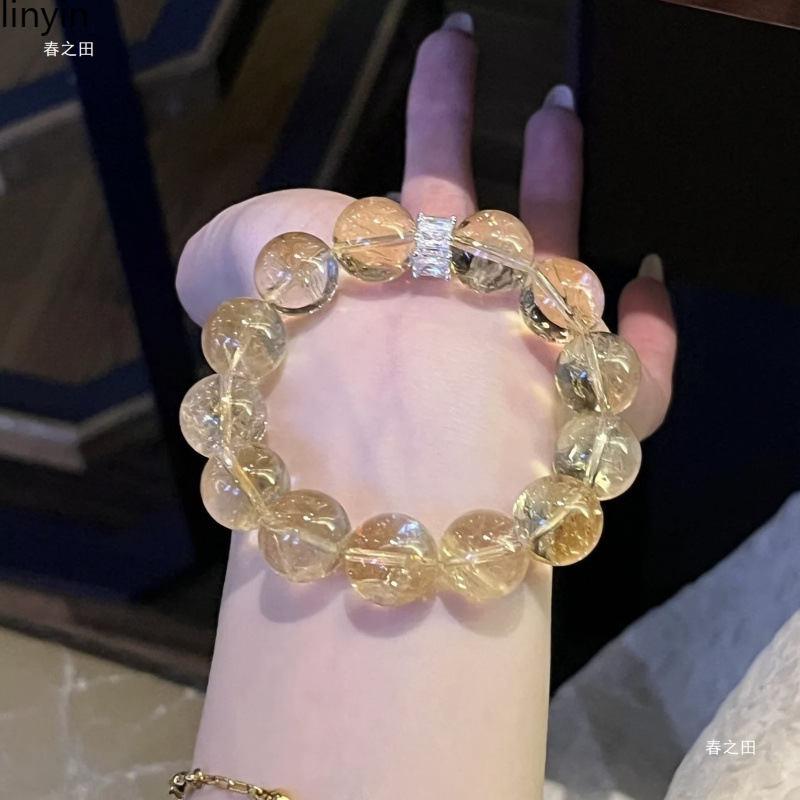 暴富設計黄阿試合ブレスレット女黄水晶手串招財輸送大サイズ軽豪華小衆精致手串