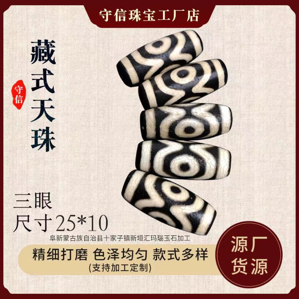 工場は新型の虎牙白黒三眼天珠チベット式を提供して、古いファッションdiyアクセサリーの瑪瑙の風化を作ります。