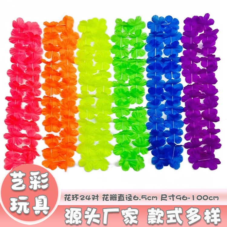 24対6.5cmポリエステル布シミュレーション花びら多彩花輪ハワイ人気混合多彩首花輪