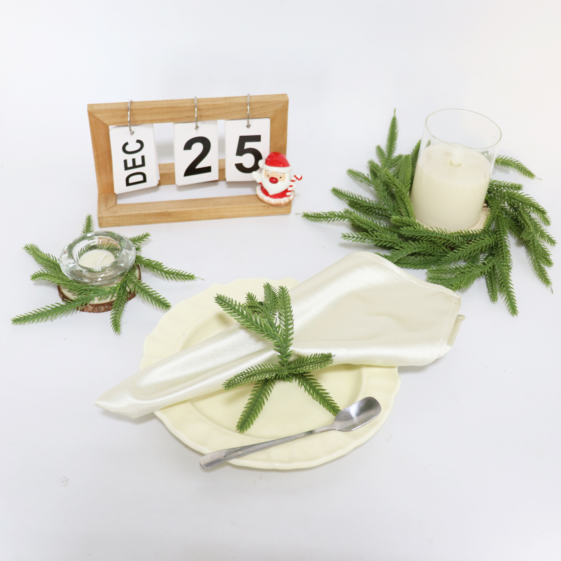 25個の松ぼっくりと松葉のPE製ミニクリスマスキャンドルホルダー、ホテルのクリスマスナプキンリング、ホームデコレーション、越境販売