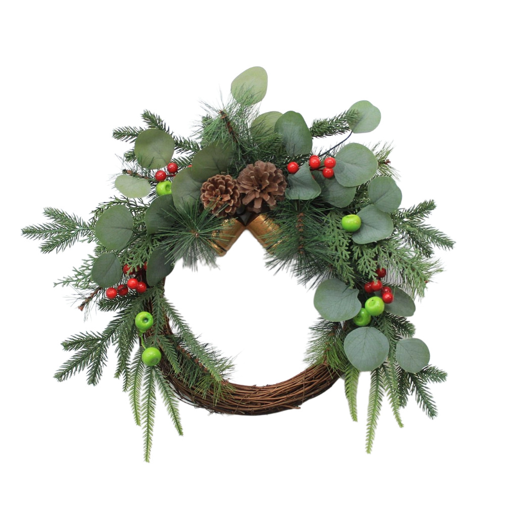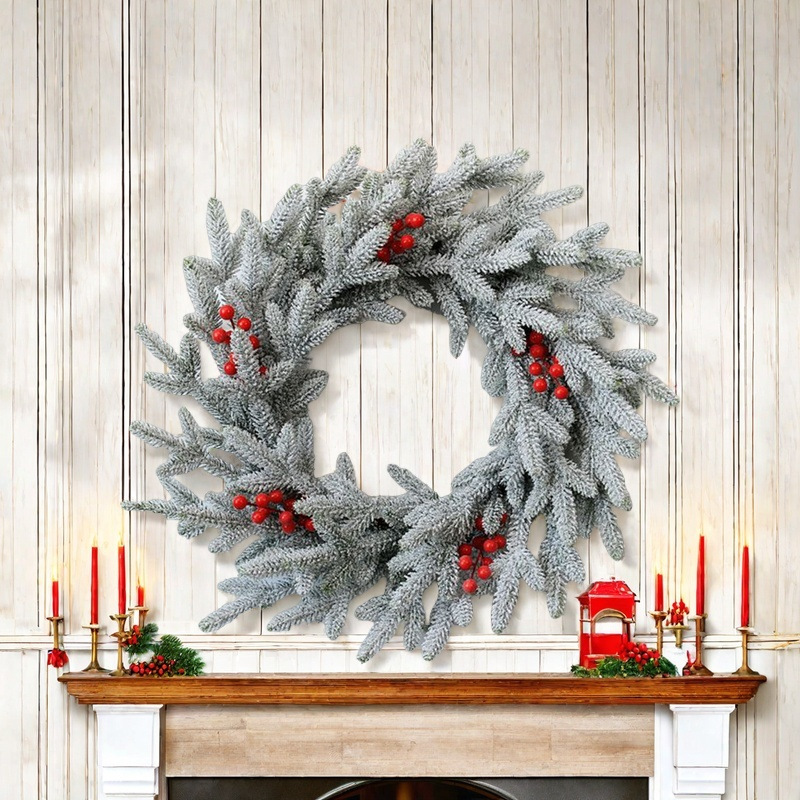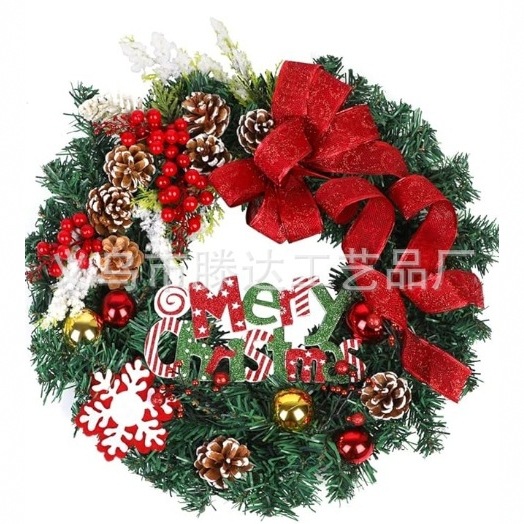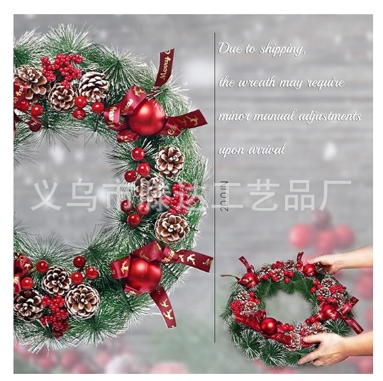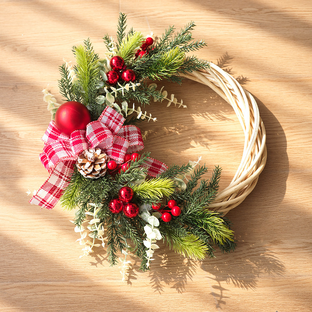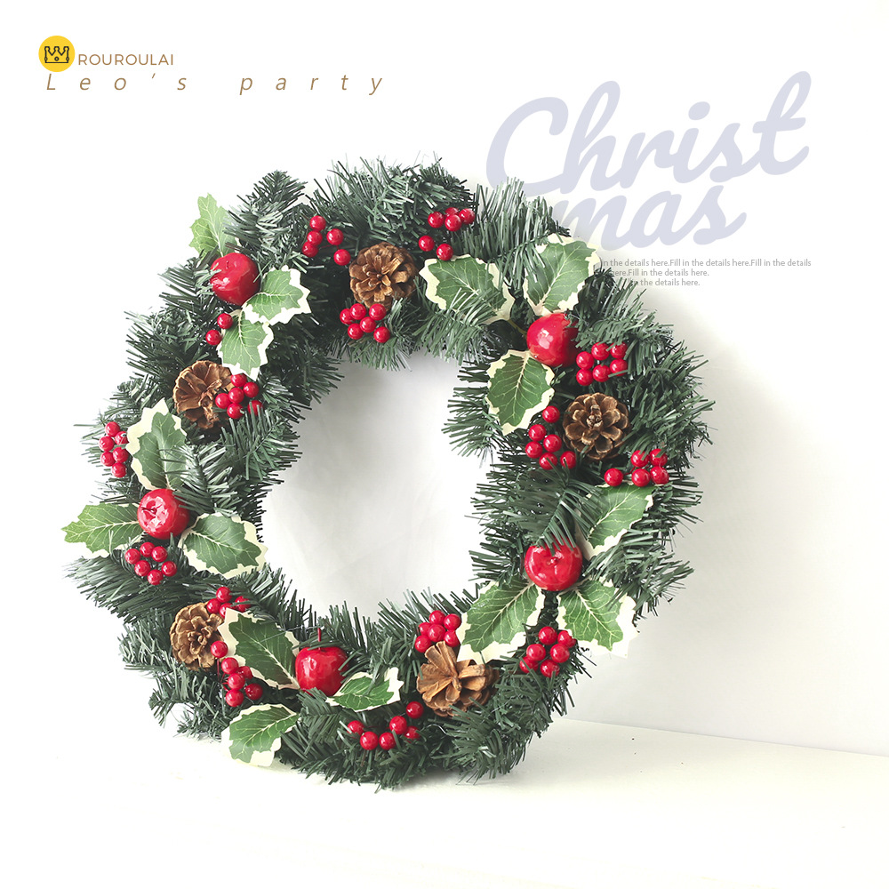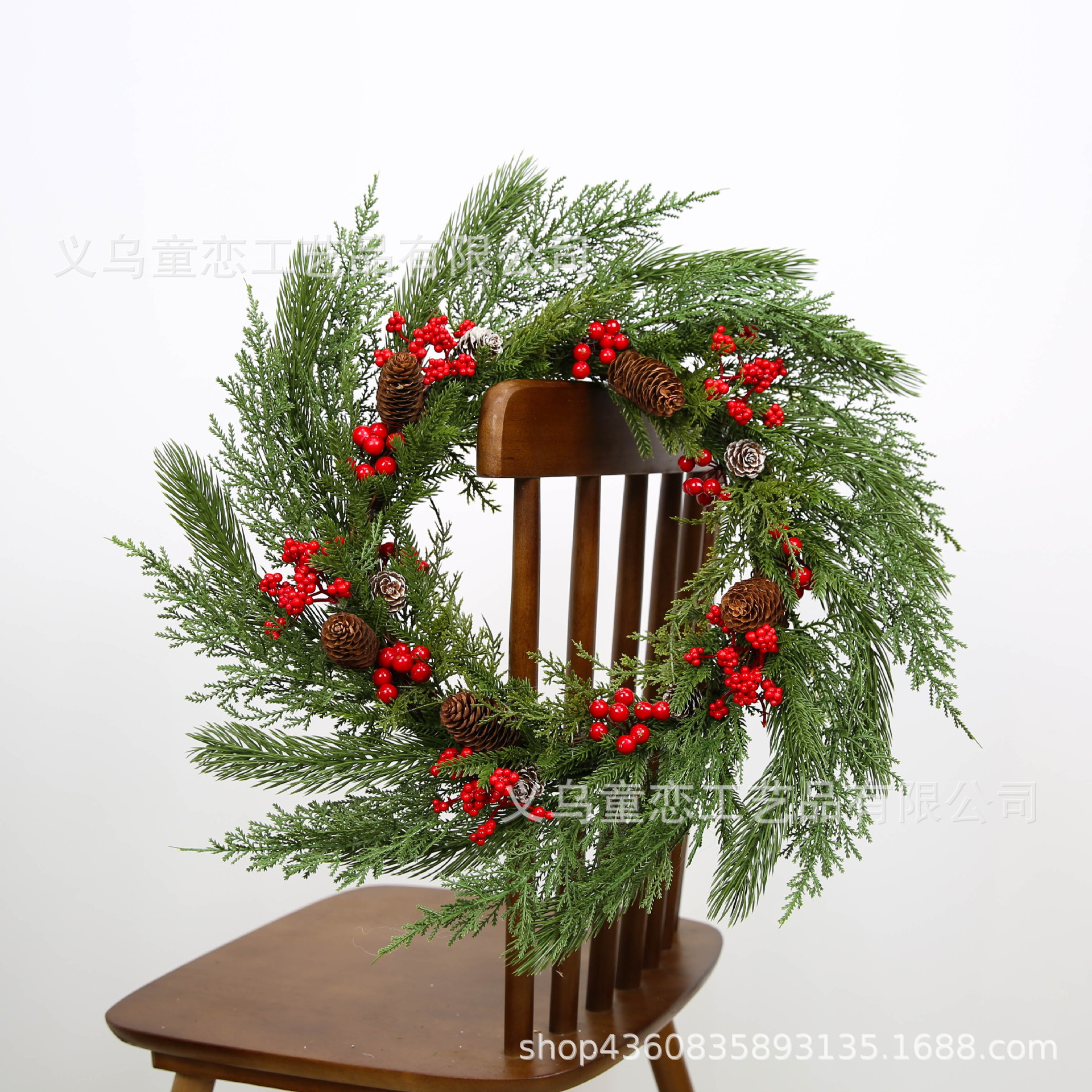 クロスボーダークリスマス装飾籐リングガーランド吊り下げ装飾模擬緑の植物赤い果実松ぼっくりクリエイティブ装飾ドア装飾アレンジメント