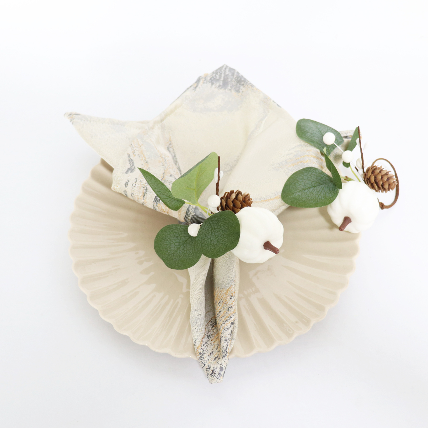 ホット販売ヨーロッパとアメリカの白カボチャユーカリの葉ハロウィンナプキンリング燭台リング感謝祭クリスマス装飾クロスボーダー