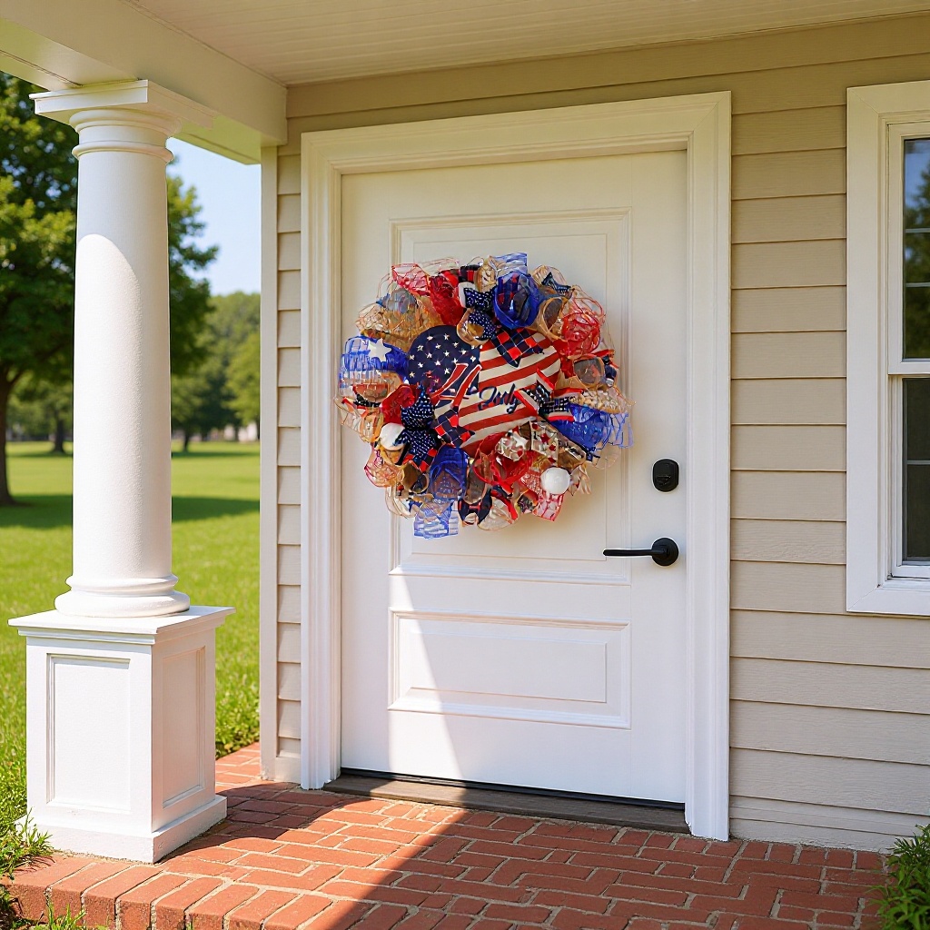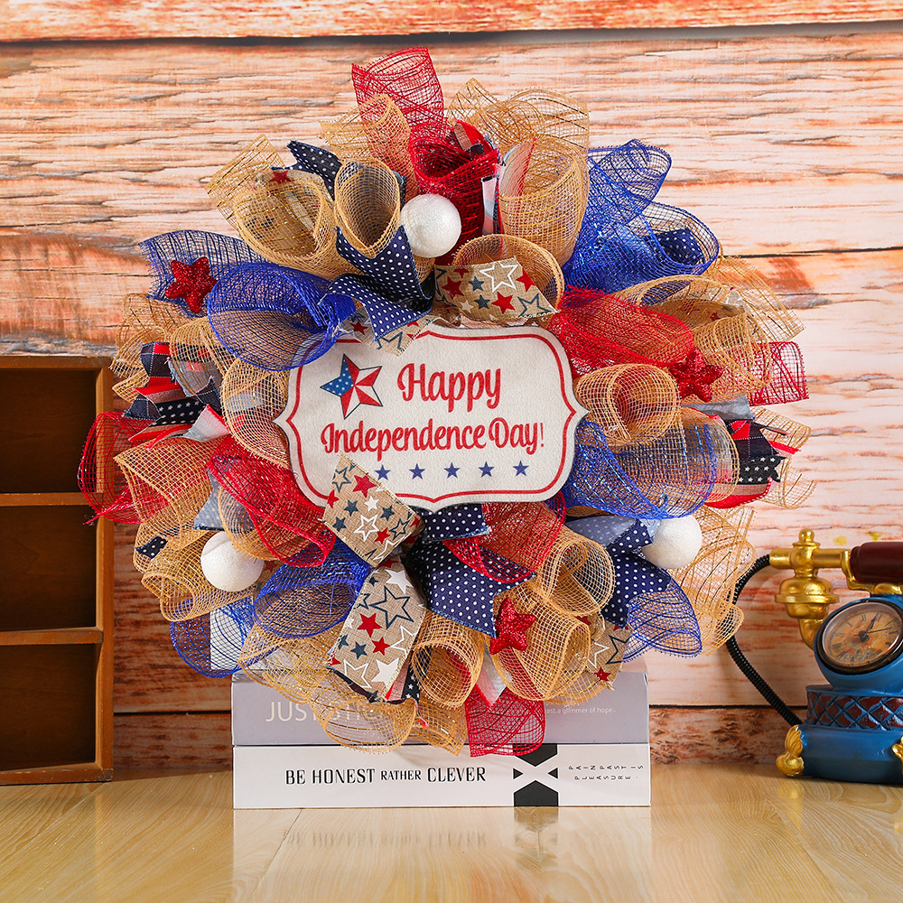 2025 新しい独立記念日模擬植物野生の花装飾花輪アメリカ独立記念日花輪クロスボーダー窓とドアの装飾