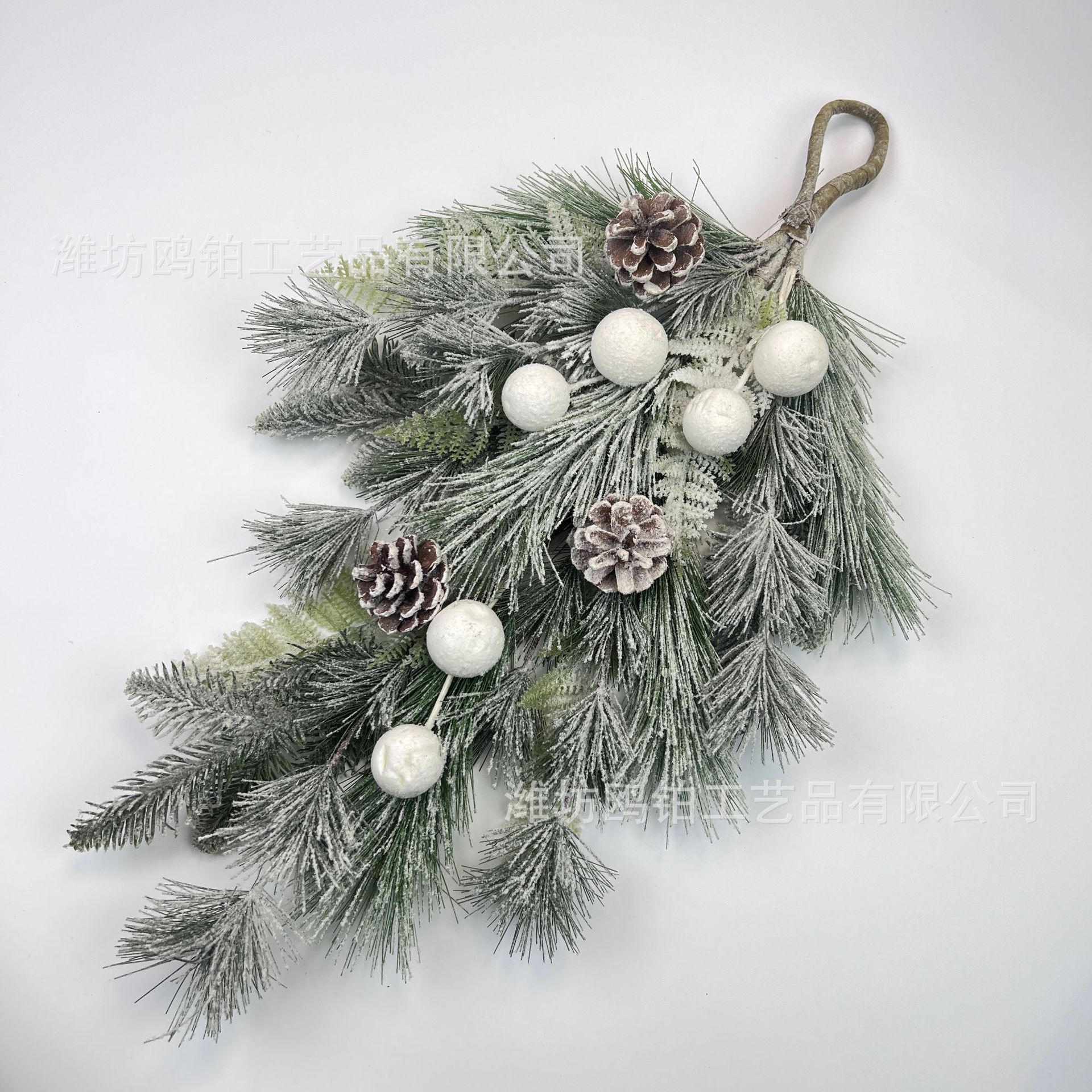 欧米の人気クリスマス装飾冬の飾りの前に雪を掛けて手で松の実を飾ってクリスマスに掛けます。