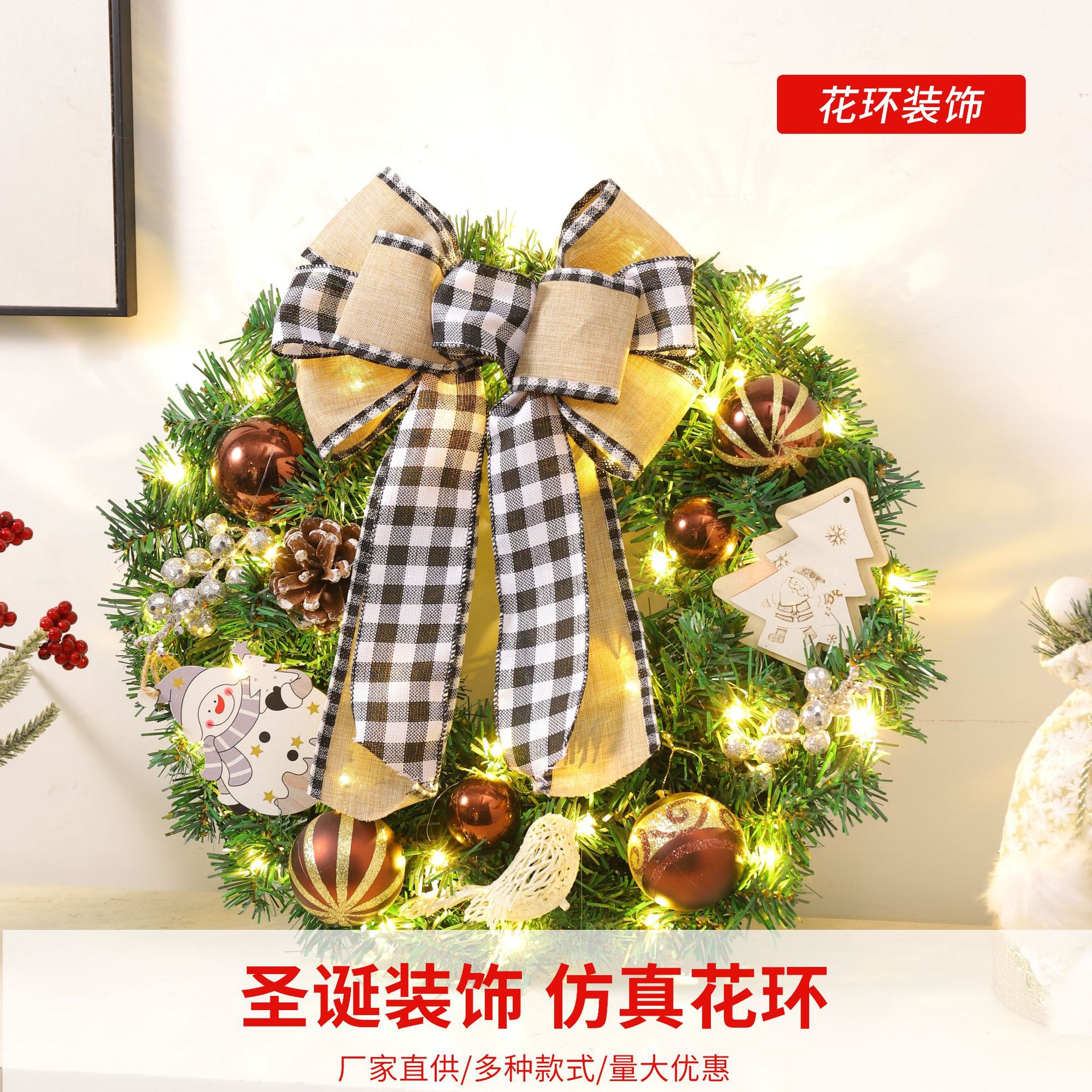 クロスボーダー新しいクリスマスチェック柄リボンガーランドクリスマスツリー装飾雰囲気アレンジメントクリスマス二重リボン