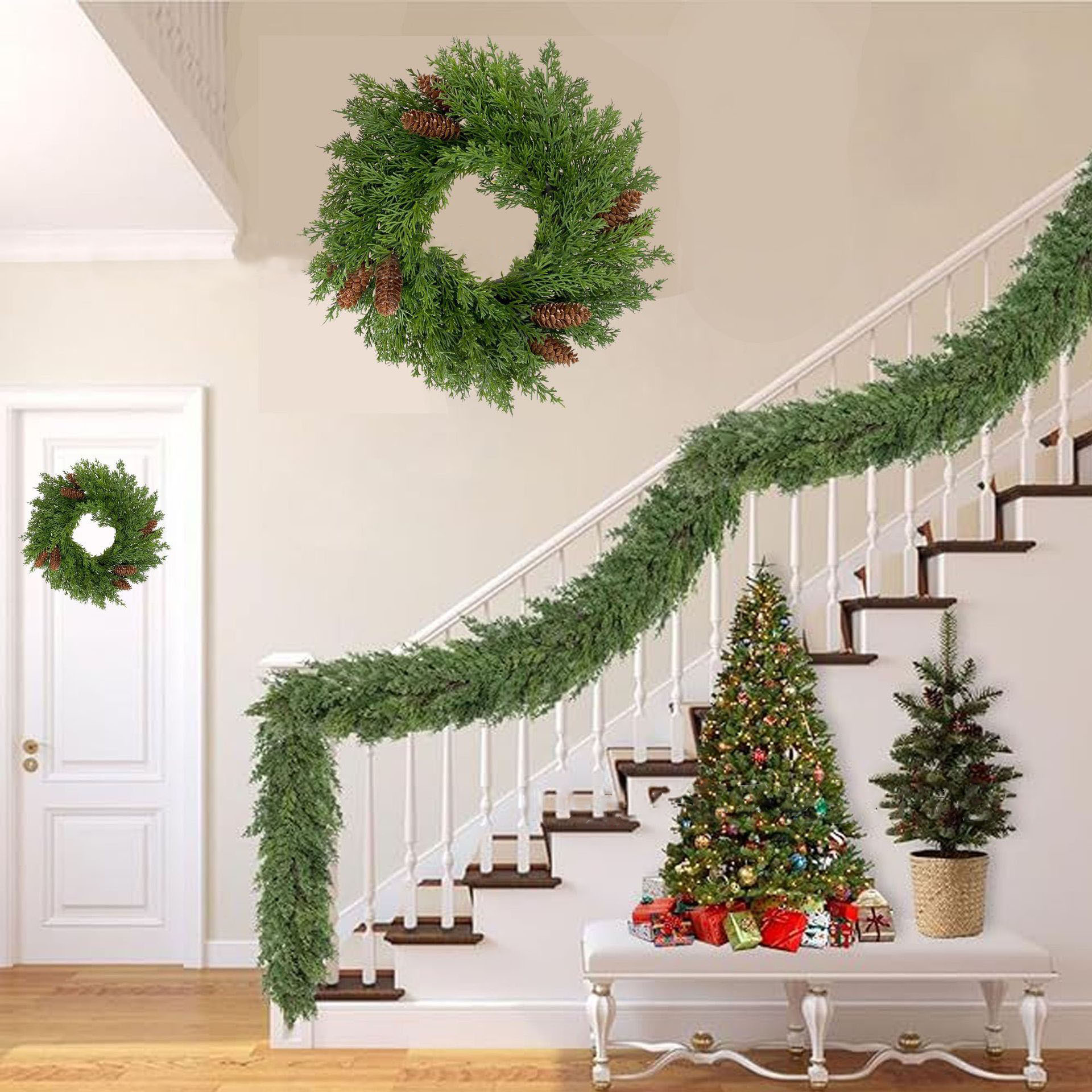 メーカー卸売クロスボーダーシミュレーション感触ソフトプラスチック松クリスマスガーランド装飾ホームドアハンギングシーン装飾