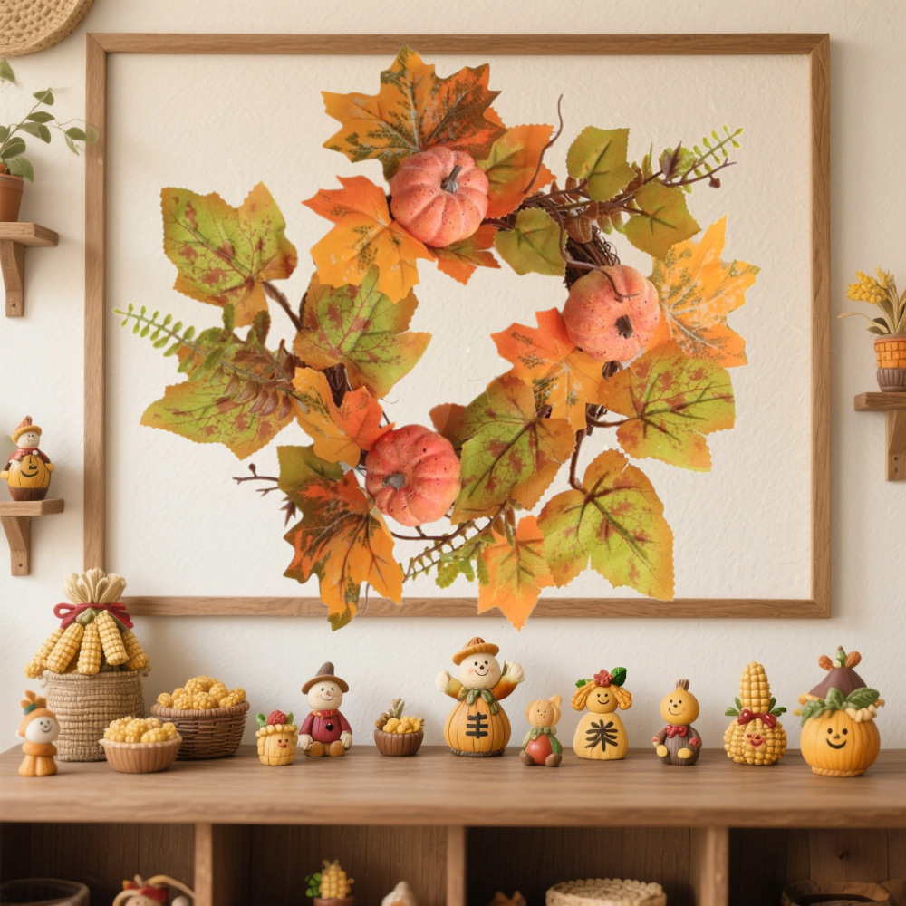 秋の模擬オークの葉カボチャ赤い松ぼっくり装飾セット (ヘッドボード) ホームシーンのレイアウト