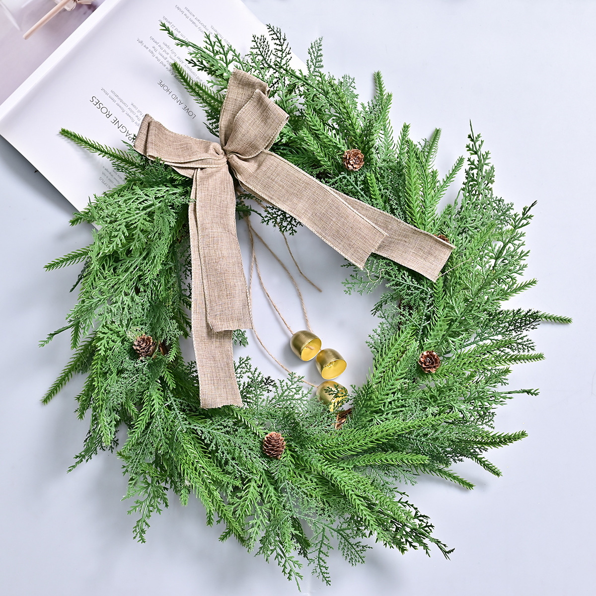 新しい北欧スタイルグリーン松葉ドアハンギングガーランド弓松ぼっくりベルペンダントクリスマス装飾ガーランドギフト