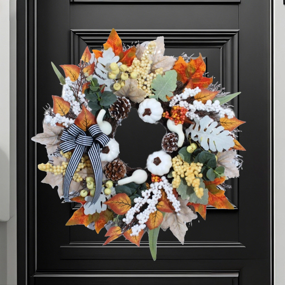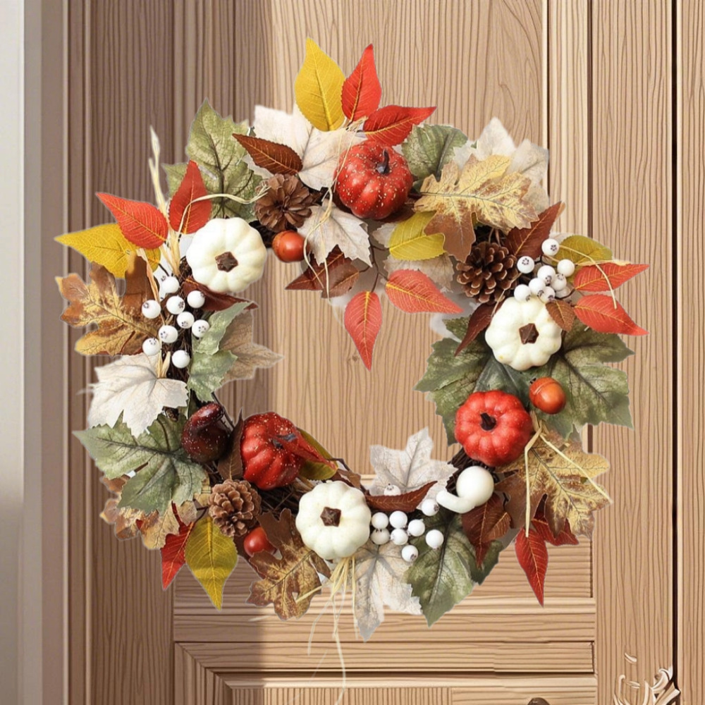 ハーベストフェスティバルファームハウスデコレーションファームハウス感謝祭カエデの葉ベリー白カボチャセットガーランドオーナメントペンダント