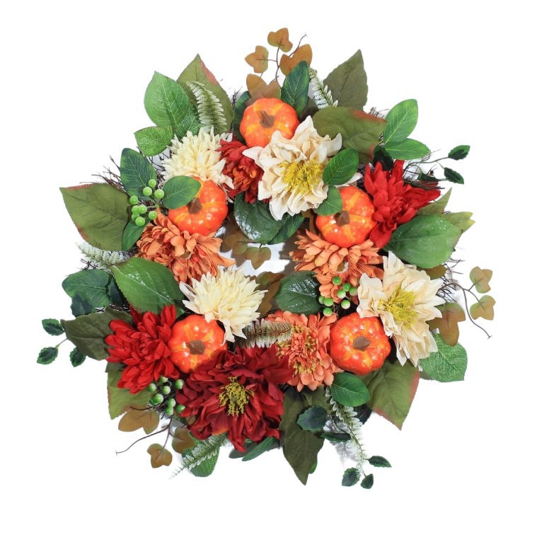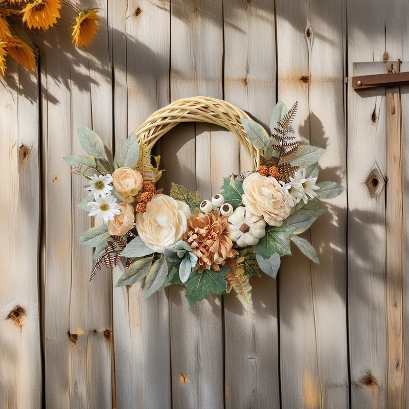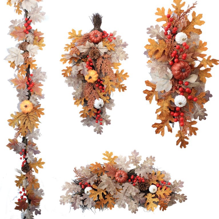模擬花半円形ガーランド感謝祭玄関装飾装飾品白カボチャ秋収穫ガーランド収穫シーズンホットセール