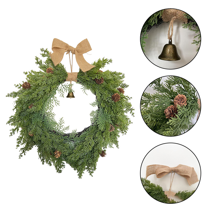 クロスボーダー新製品クリスマスベルガーランド籐サークル装飾ホーム暖炉装飾品窓玄関ドア壁掛け
