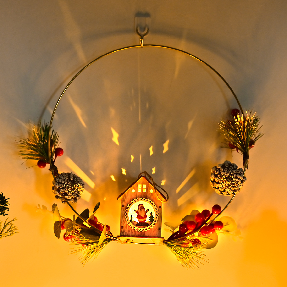 跨境LED灯发光花环圣诞氛围挂件节日派对家居装饰红松果房子挂饰