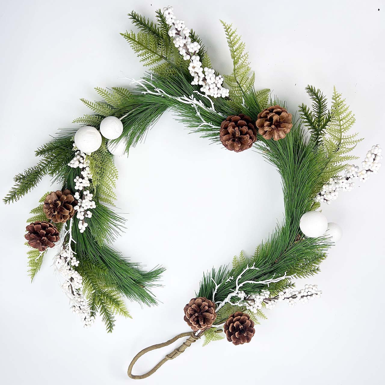 クリスマス装飾松葉籐 1.6 メートルクリスマス籐白い泡ボール松ぼっくり手作りクリスマス籐