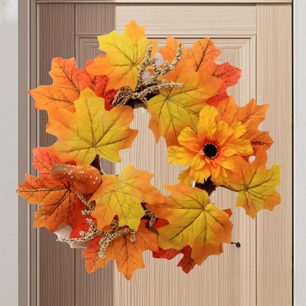 カエデの葉牡丹の花模擬ベリーひまわり感謝祭の装飾フロントドア吊り下げ人工花輪収穫祭
