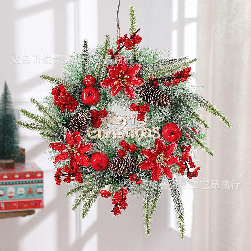 クロスボーダーの人気クリスマスの花輪クリスマスの松の実のリンゴは欧米の室内の装飾の扉の壁のペンダントの花輪を飾ります。