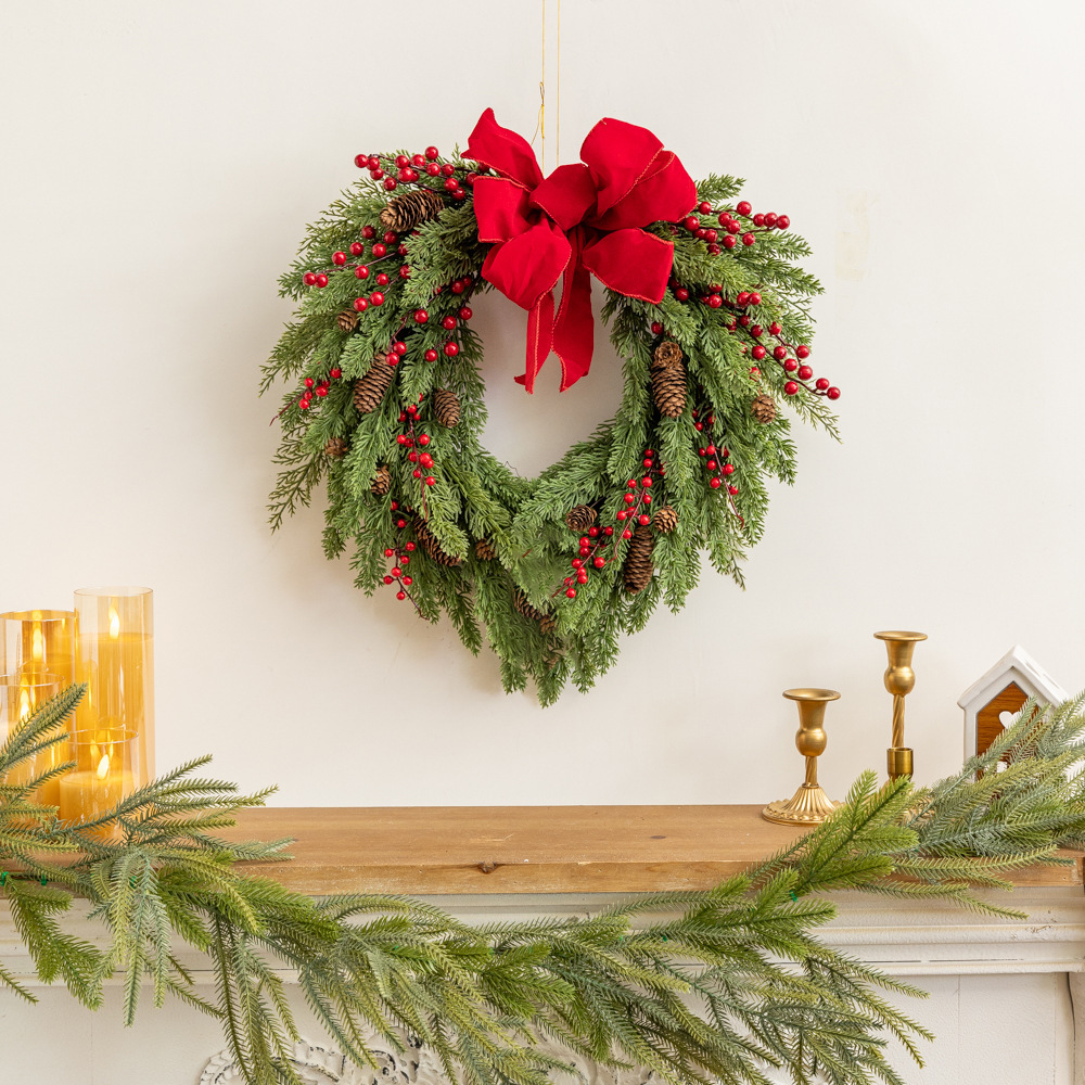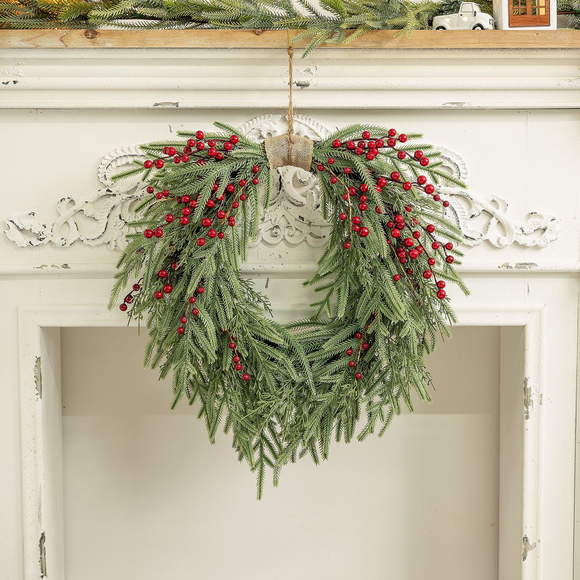 国境を越えたクリエイティブなクリスマスリース 赤い果実と松葉のレストランのクリスマスデコレーション ウィンドウやドアに飾るクリスマス松の輪 卸売