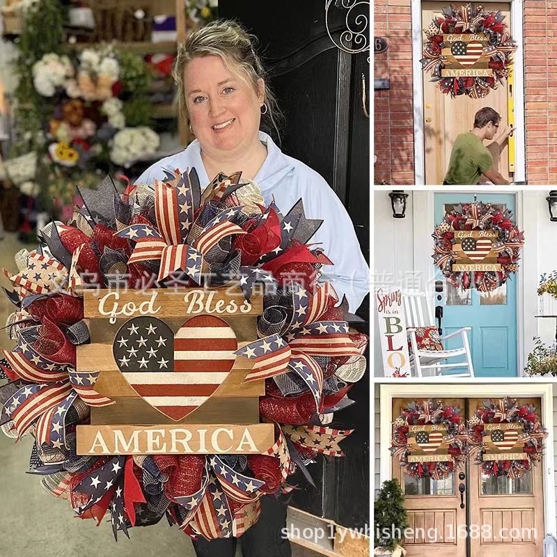 美美アメリカ国慶節独立日花輪国境を越えた家庭新製品赤白青麦穂倒掛装飾門掛花輪