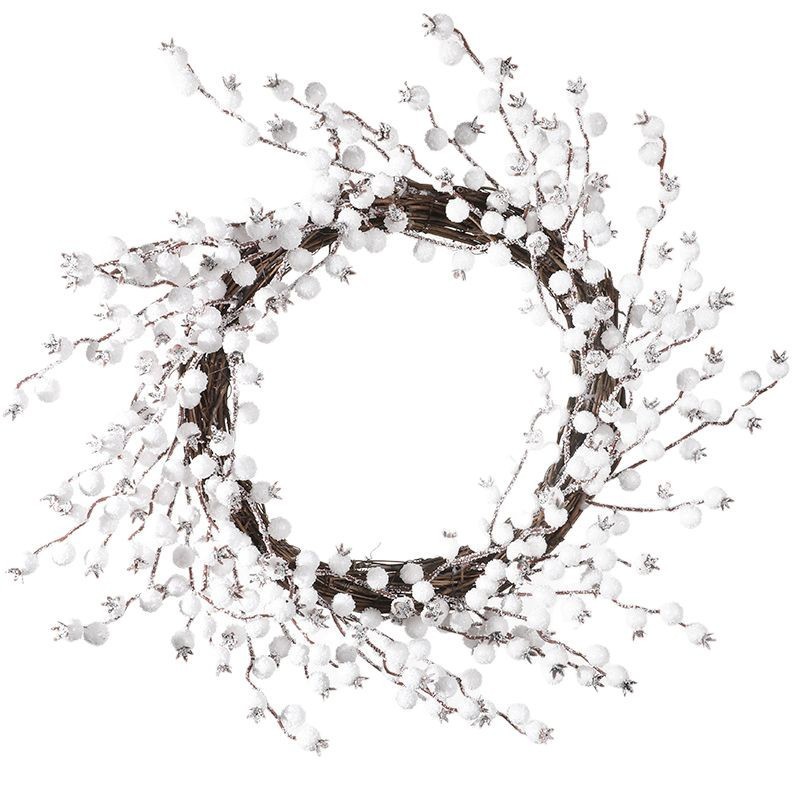 50cm白ベリー田園風花輪クリスマス装飾品白小果花輪門掛白サンザシ果雪