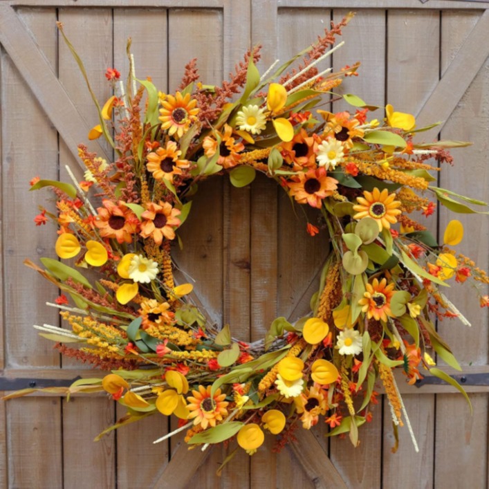2025新商品感謝祭豊作祭50cm麦穂花輪前門門掛装飾家装飾品壁掛け