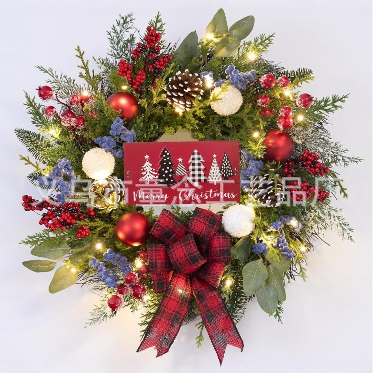 トーチ晟新商品クロスボーダークリスマス蒋果花輪TEMUハイエンド手触り料60cm前ドアドア掛け装飾品
